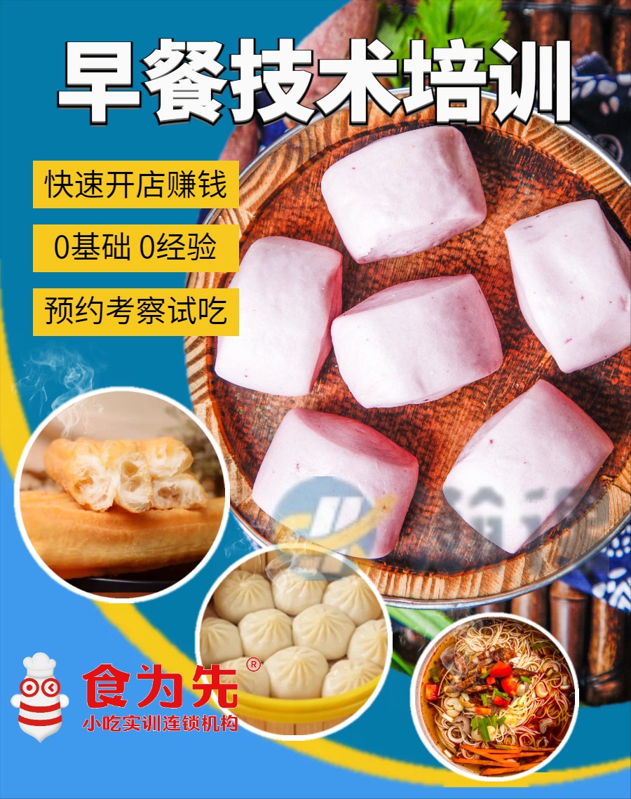 馒头、花卷、包子、小笼包、豆浆、油条、麻球、南瓜饼、小米粥、黑米粥、八宝粥、皮蛋瘦肉粥、馄饨、饺子、胡辣汤、粢饭糕、煎饺、豆腐脑、茶叶蛋、汤粉、汤面、炒粉、炒面、烧麦等制作方法技巧。